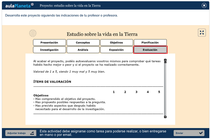 Con las escalas de valoración que te facilita aulaPlaneta podrás evaluar la realización de determinadas tareas por parte de los alumnos, como las webquests y los proyectos:
