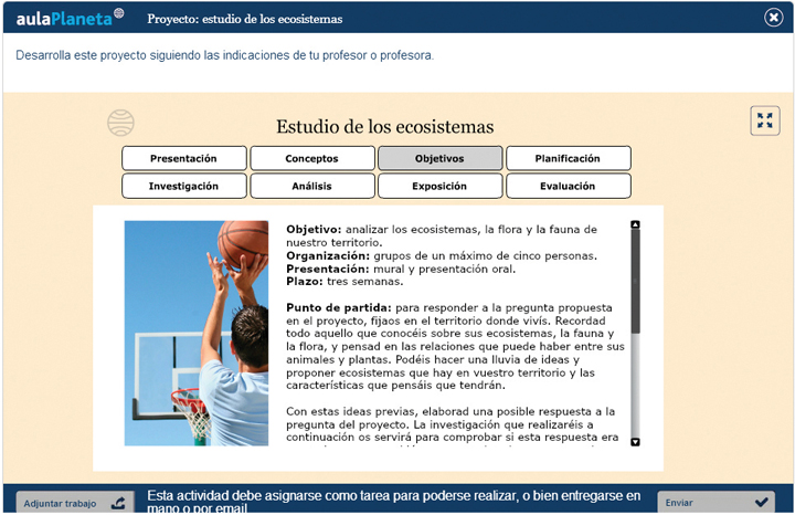3. Utiliza los proyectos que te ofrece aulaPlaneta. En ellos tus alumnos tendrán que realizar y distribuirse las distintas tareas, desarrollar roles específicos dentro de su grupo, asumir responsabilidades individuales y comunes, investigar y compartir información y opiniones, debatirlas y llegar a acuerdos para presentar las conclusiones comunes y dar respuesta al objetivo del proyecto.